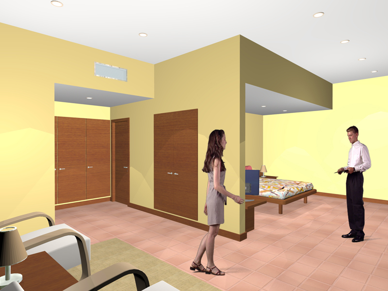 Construção de modelo tridimensional de unidade hoteleira e produção de imagens foto-realistas.