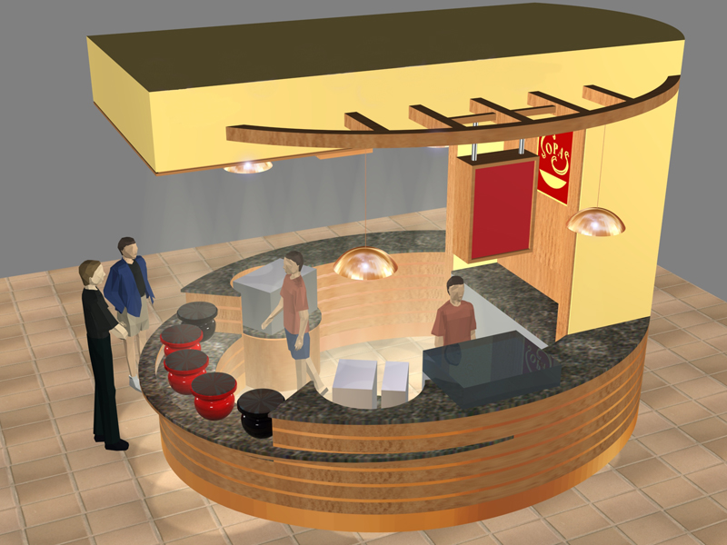 Projecto de quiosque para a cadeia de restauração “Loja das Sopas”.
